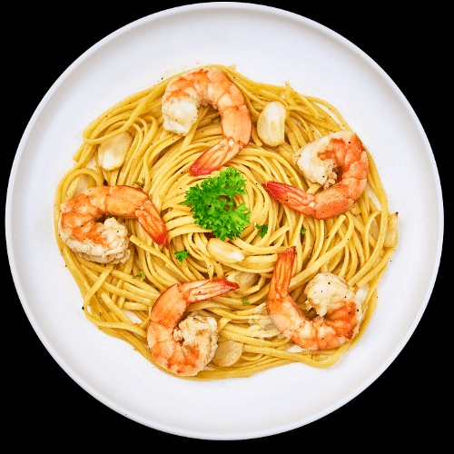 Linguine tossed in garlic & butter sauce and shrimp.