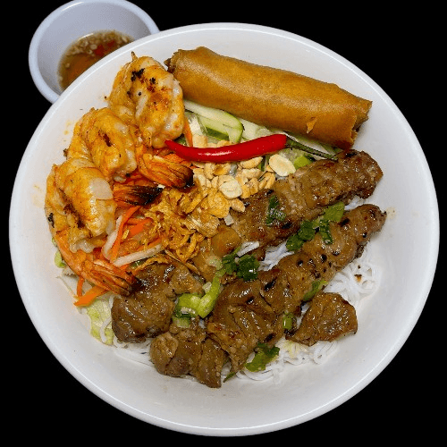 Vermicelli with Grilled Pork, and Grilled Shrimps,