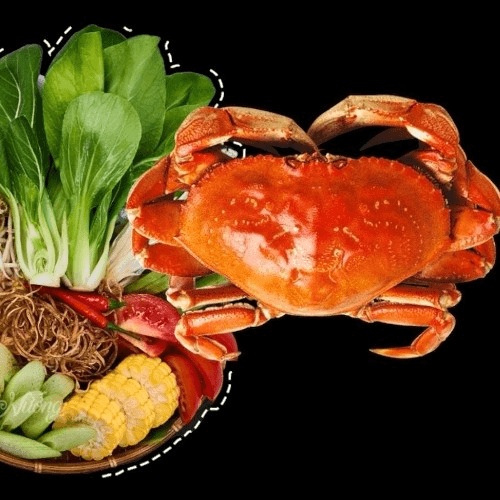 The crab hotpot includes vegetables, broth, vermicelli, and 1 Dungeness crab.