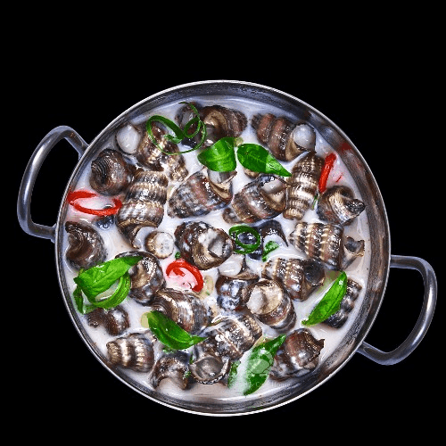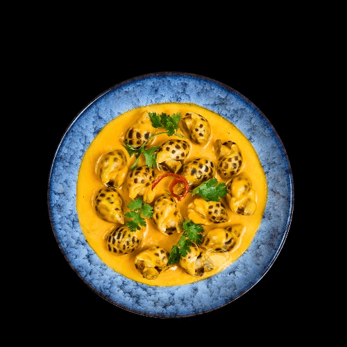 Sea snails in coconut sauce.