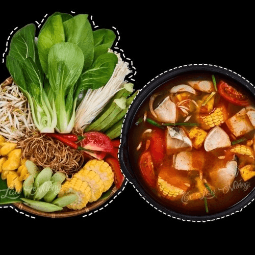 Sturgeon hotpot comes with vegetables, broth, and vermicelli, and sturgeon filets.