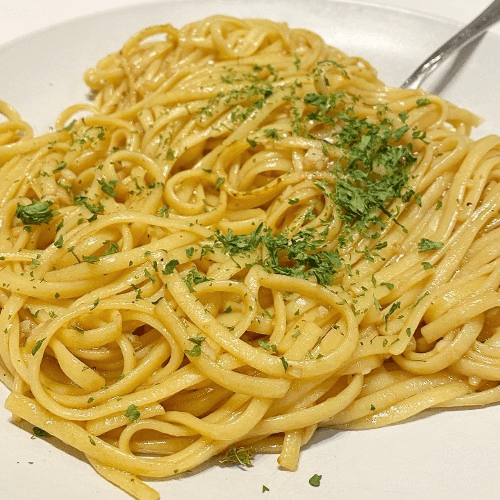 Linguine tossed in garlic & butter sauce.