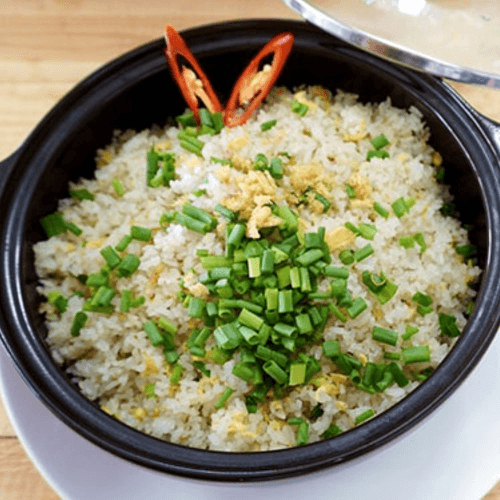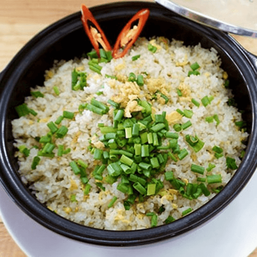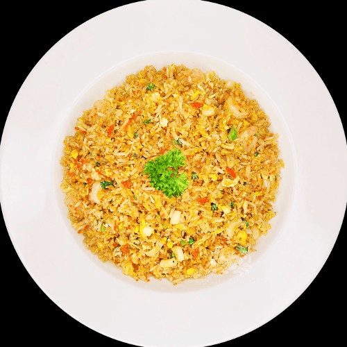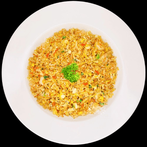 A perfect balance and well-seasoned wok fried rice with shrimp, squids, fish roes, egg, and green onion.