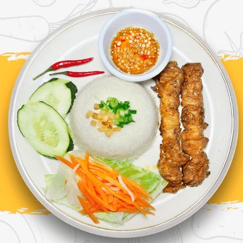 Broken Rice plate with one (1) choice of meat. Grilled pork, grilled chicken, grilled pork chop, or beef short-rib.