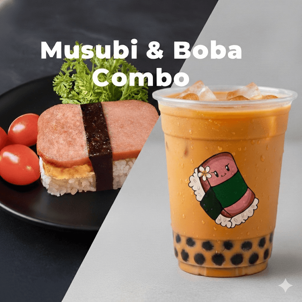 A choice of 1 Musubi and 1 Milk tea or Thai tea. $7.99 Combo for the first 3 months.