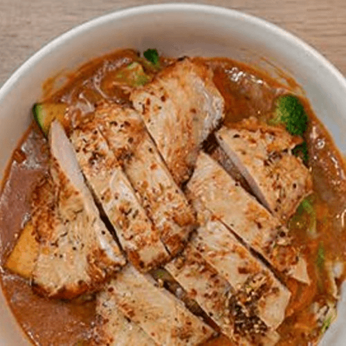 Thai chicken red curry with rice and steamed veggies