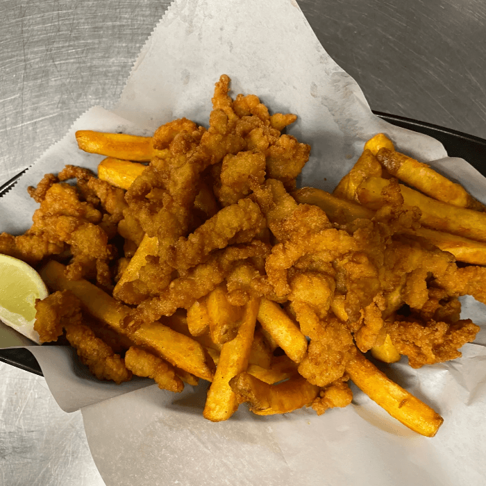 Fried popcorn shrimp & French fries